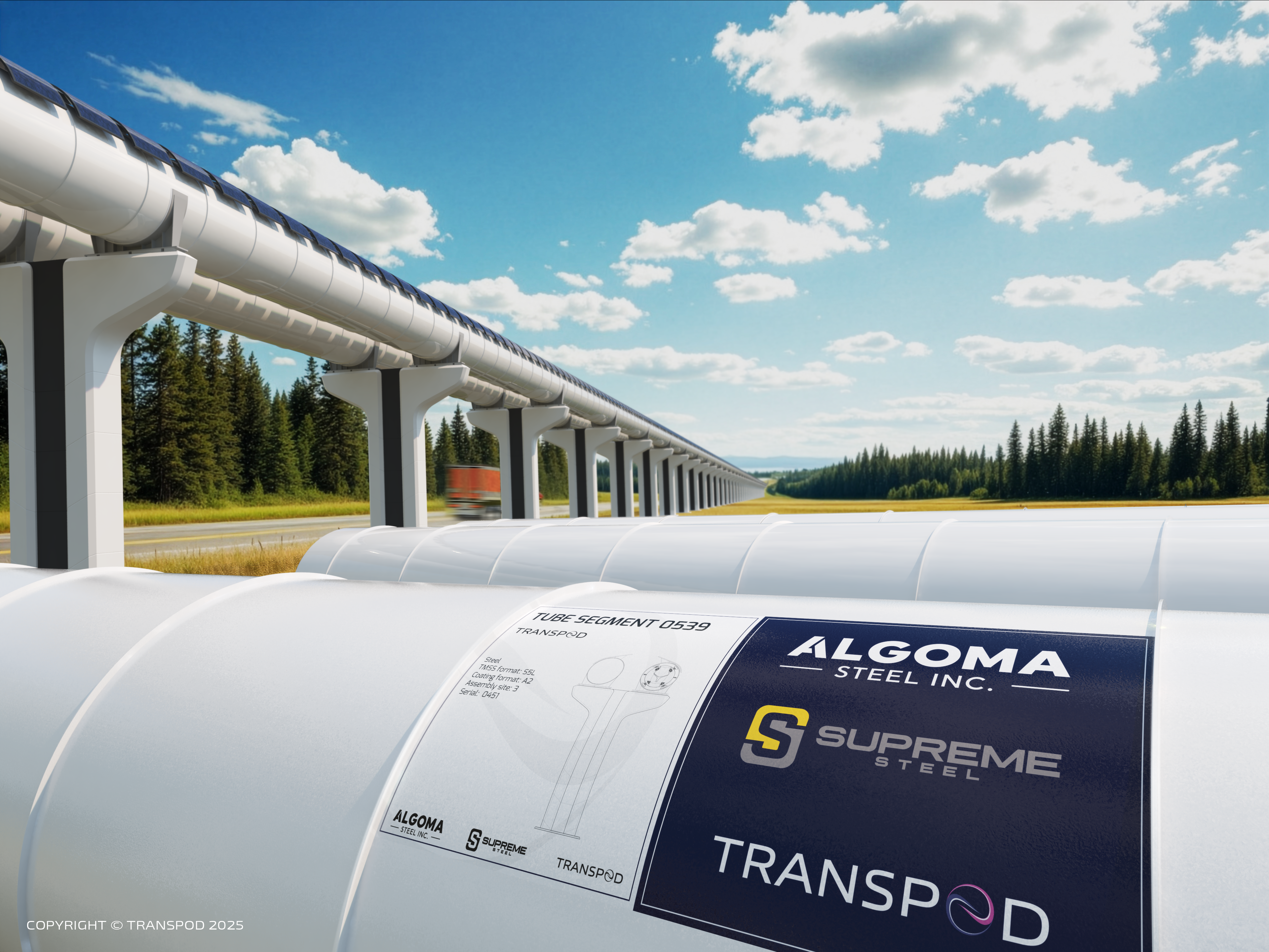 TORONTO — October 2, 2025 — TransPod, the Canadian company developing the world’s leading ultra-high-speed ground transportation through its TransPod Line infrastructure system and FluxJet vehicle, today announced a strategic collaboration with Algoma Steel and Supreme Steel to advance the Edmonton–Calgary Tube Transportation Project Test Track. The project has been designated by the Government of Alberta as one of the province’s Major Projects — large-scale infrastructure developments expected to create jobs, attract investment, and strengthen long-term competitiveness.